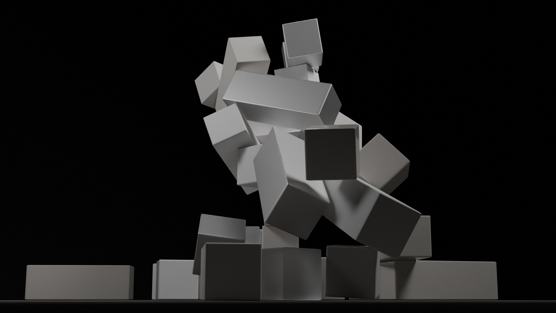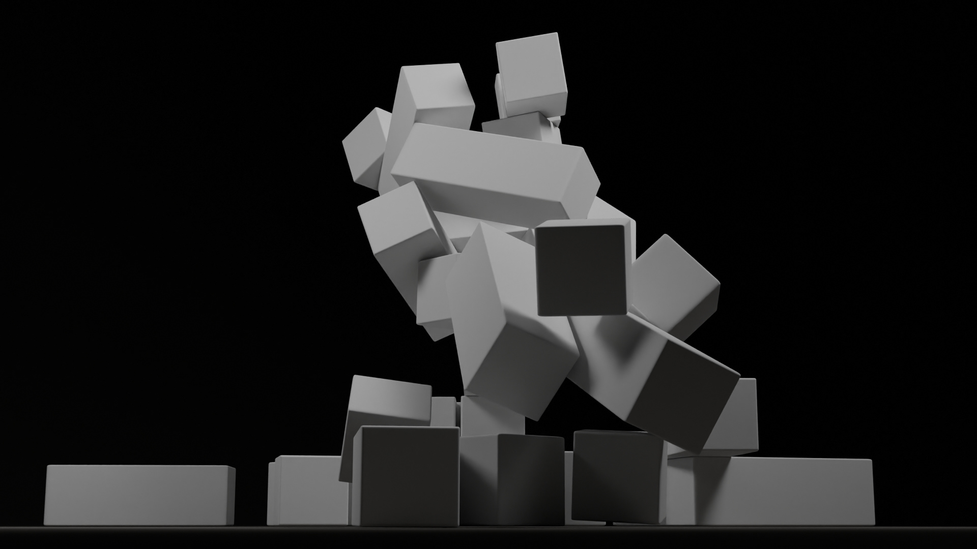 A breakdown of progression in Blender, from base model to applying lighting and textures. Additionally the video demonstrates how the physics of the tumble were realised, courtesy of shifting blocks rendered invisible to the camera.